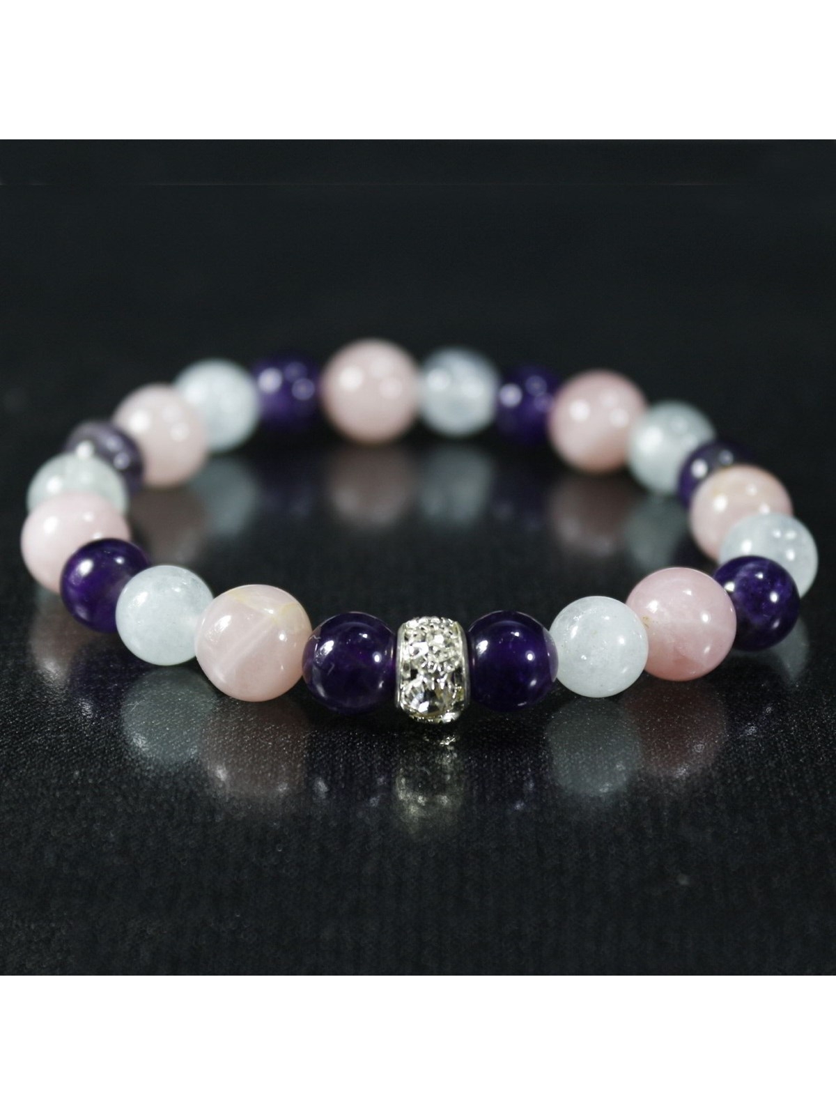 Ametist Taşı, Pembe Kuvars ve Akuamarin üçlüsü ile doğal taş dünyasının en sevilen doğal taşları sizler için Doğal Taş Bileklik yapımında kullanıldı. Işıltılı taşı ile birlikte Karma Doğal Taş Bileklik Şifa aradığınız birden çok konu varsa veya üç ayrı bilekliği birlikte takma derine düşmek istemiyorsanız doğal taş karma bileklikler tam size göre. İstediğiniz doğal taşları özgürce karıştırma konforu veren bu sistemi çok seveceksiniz.