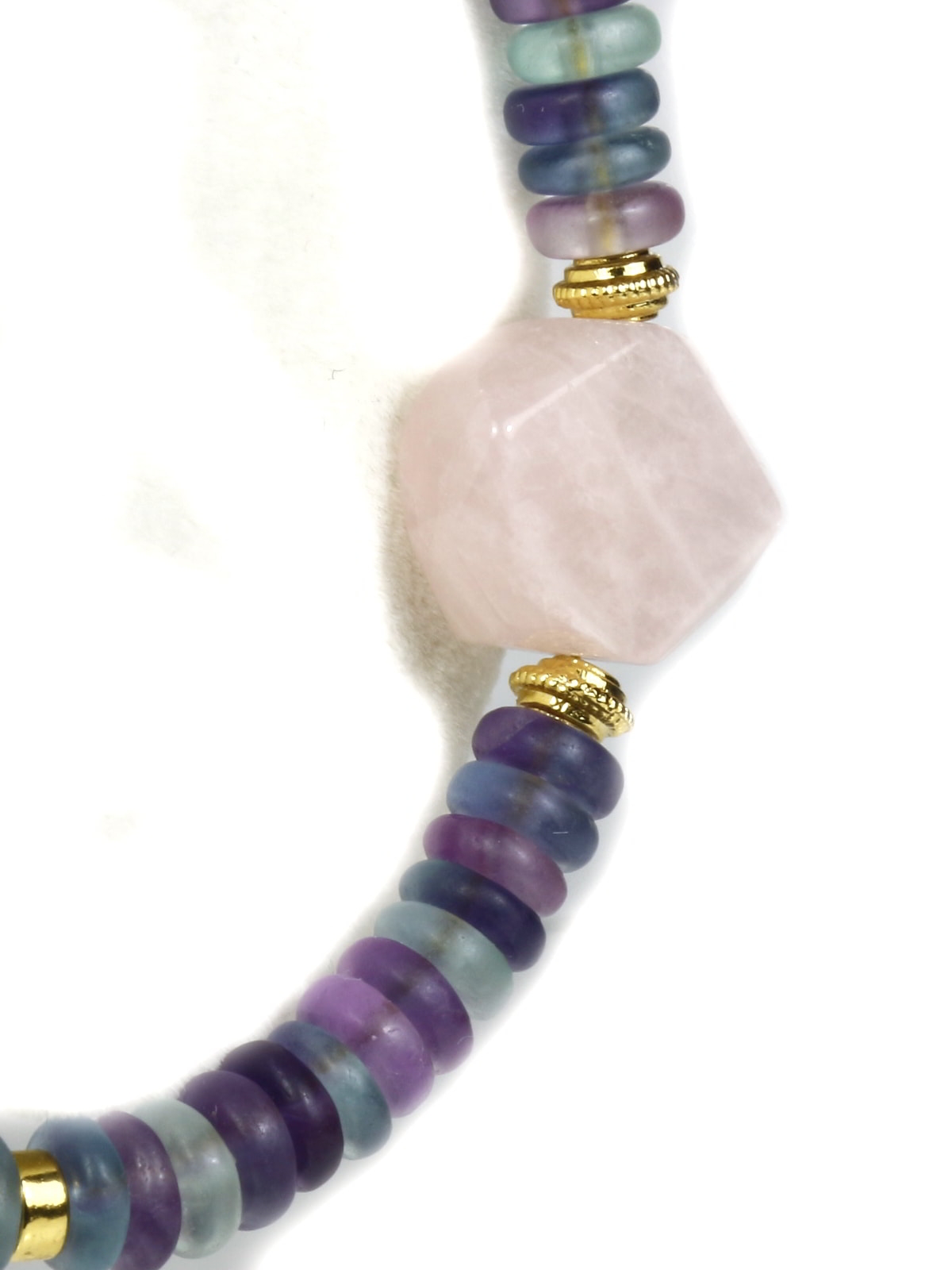 Floritin renk enerjisini, pembe kuvarsın huzurunu ve altının zarafetini bir araya getir.