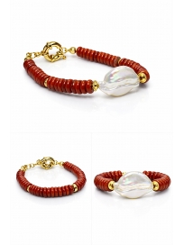 Merkezdeki barok inci, denizin en saf halinden gelen doğal bir ışıltıyla tasarıma zarif bir dokunuş ekler. Her açıdan farklı bir parıltı yansıtan bu inci, bilekliğe lüks ve asil bir duruş kazandırır.