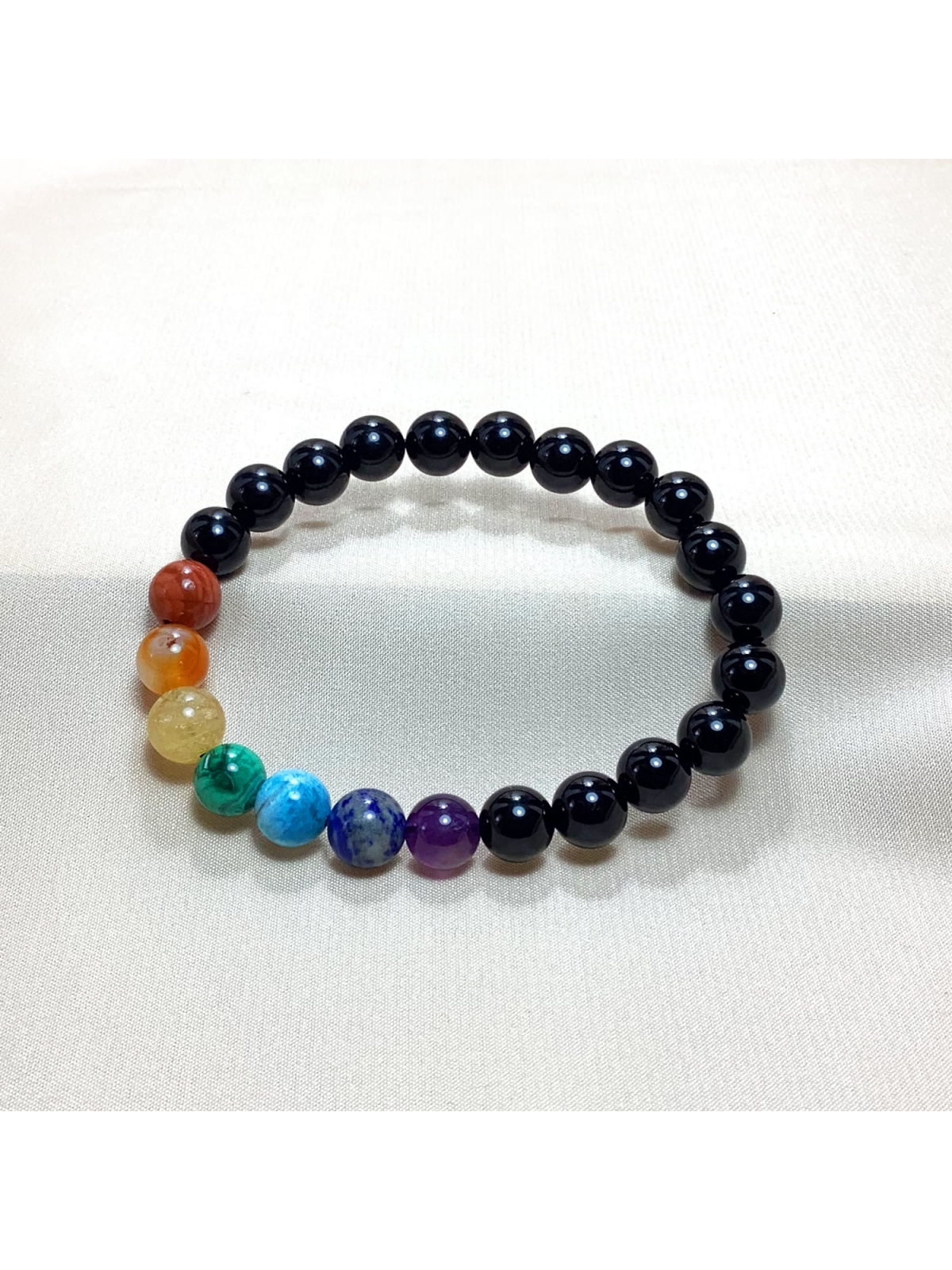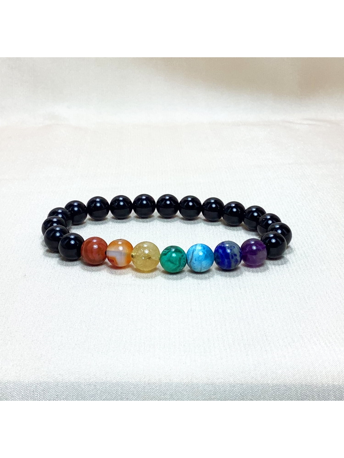 Stres taşı Oniks ve Çakra taşları bir araya geldi, Çakra Doğal Taş Bileklik için yepyeni bir tarz dizayn etti. Parlak Oniks taşına Çakra Doğal Taş Bileklikte 7 Farklı Çakrayı temsilen 7 Farklı Renkte Doğal Taş eşlik etti. Şifa, arınma, aura ve çakra temizliği için kullanabileceğiniz Oniks Doğal Taş Çakra Bileklik sizlerin beğenisine sunuldu.