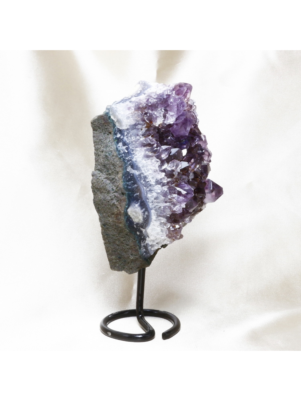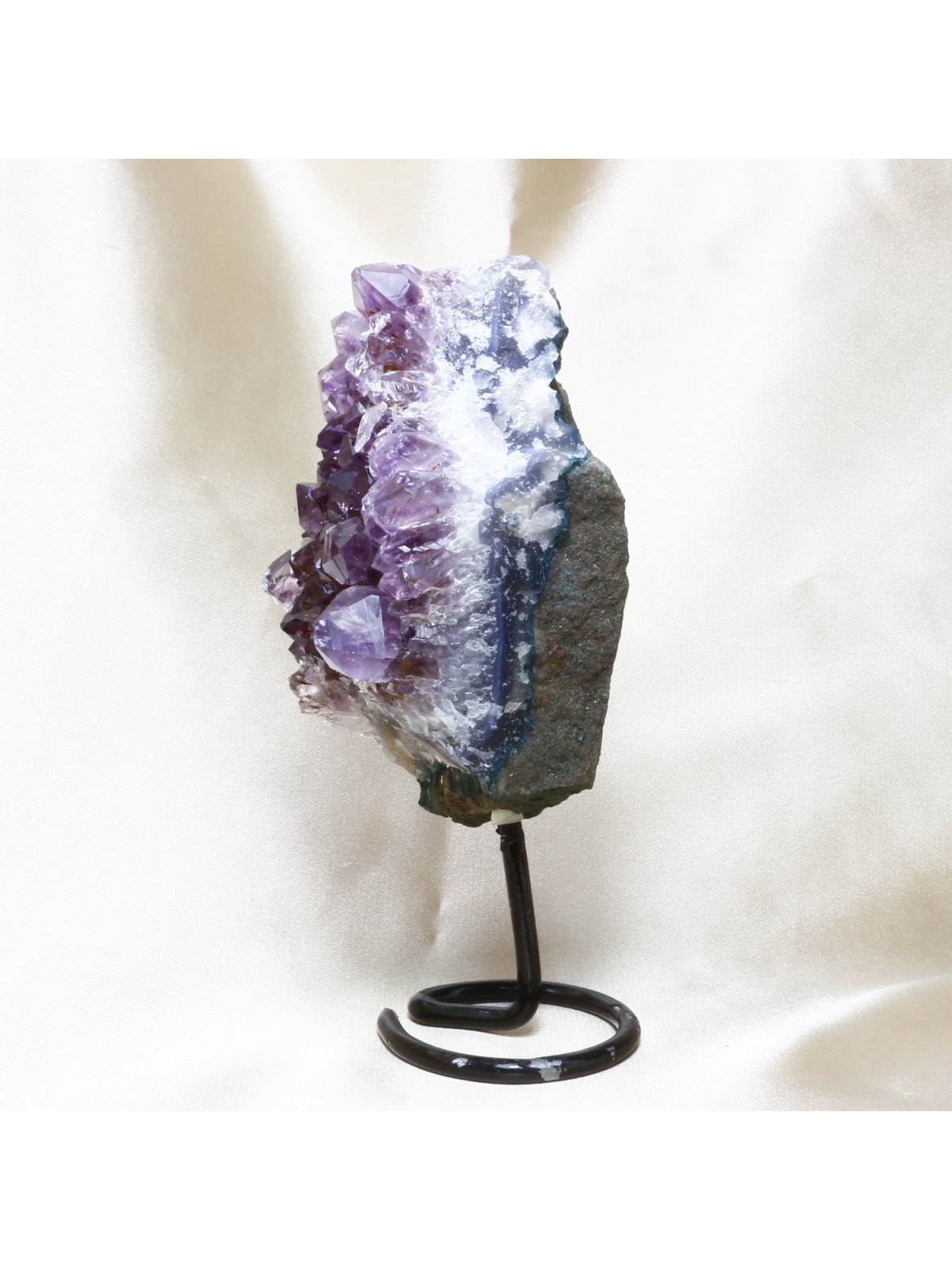 Ametist Taşı İşlenmemiş Doğal Dekoratif Kaya muhteşem mor rengi, özel metal ayağı ve iri ametist kristali dişleri ile bulunduğunuz ortamda ışıltılı ve enerjik bir hava yaratacak. Size doğanın mucizelerinden birini ulaştırdığımız için mutluluk duyuyoruz! Ametist Taşı Kaya Parçası, hem dekoratif bir obje olarak hem de içsel enerjinizi artırarak ruhsal denge sağlayabileceğiniz benzersiz bir üründür.