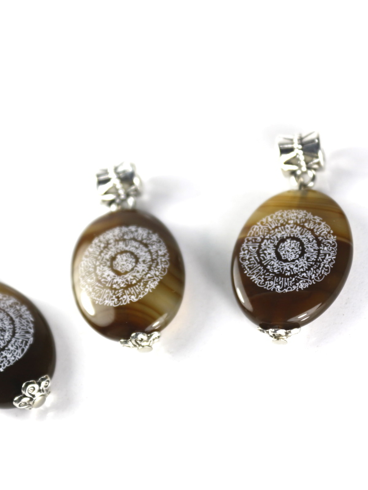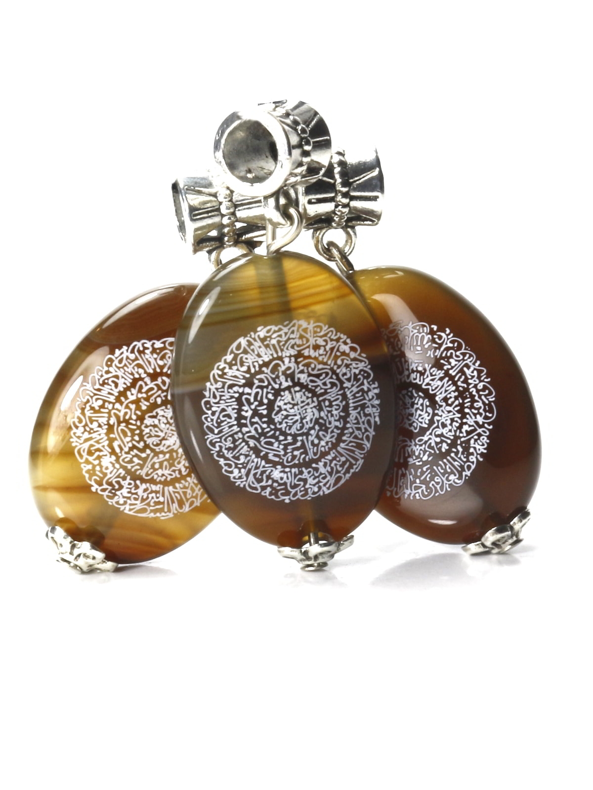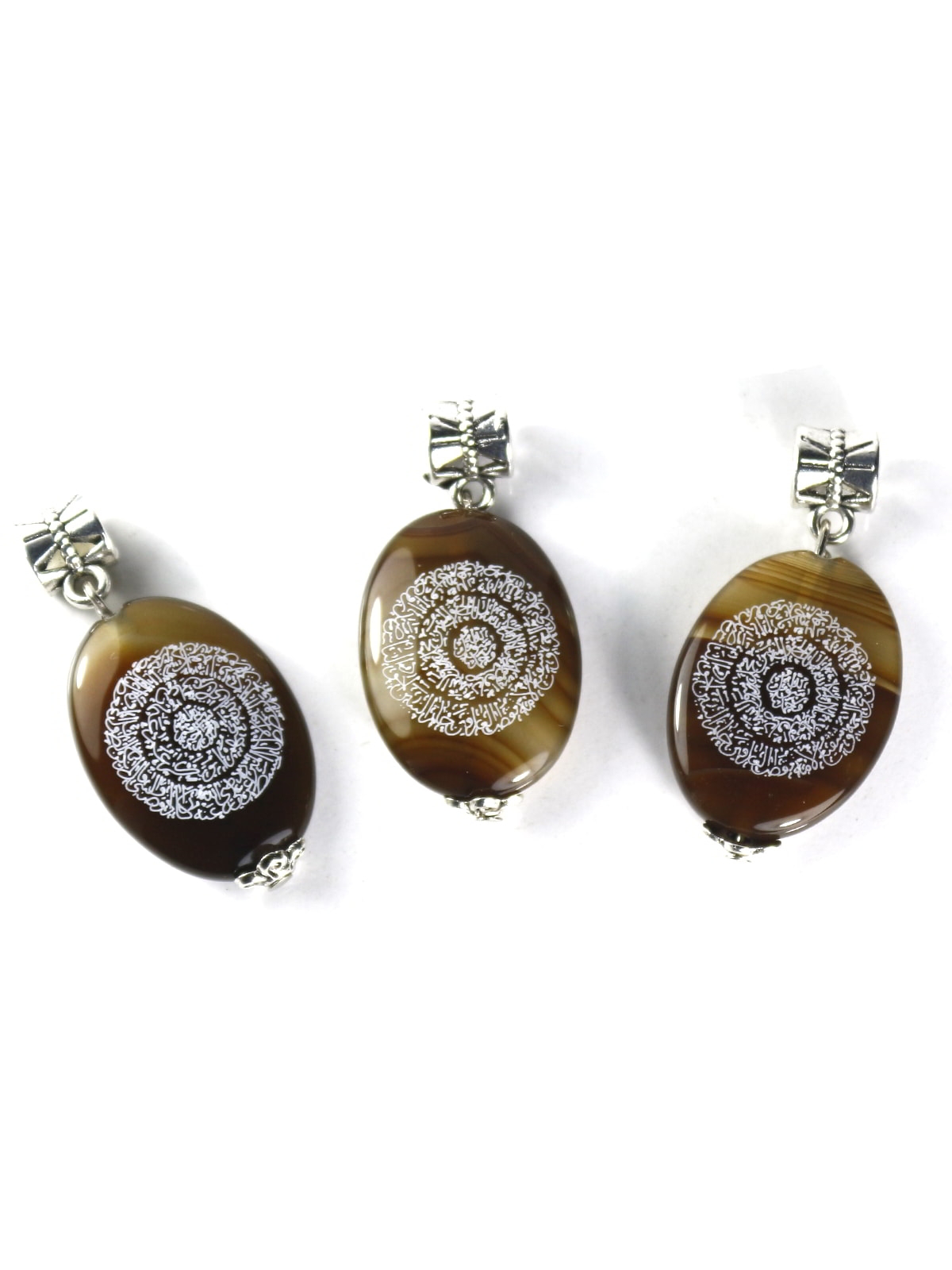 Doğanın bağrından kopup gelen hakiki Akik taşının topraksı kahverengi tonları üzerinde parıldayan beyaz hat yazıları, okunaklı ve estetik dairesel formuyla göze hitap ederken, içeriğiyle ruhunuza dokunur. Hilye-i Şerif taşıyanın "fakirlik görmeyeceği, nazardan ve sıkıntılardan emin olacağı" yönündeki kadim inanç, bu kolyeyi boynunuzda taşıyacağınız manevi bir zırha dönüştürür. Ürünün sadeliğini korumak adına çerçeve kullanılmamış, bunun yerine taşın üst ve alt kısımlarına zarif detaylar eklenmiştir. Üst kısımdaki işlemeli gümüş renkli klips ve alt kısımdaki gümüş renkli topuz, taşın doğal güzelliğini gölgelemeden ona antika bir hava katar. Her bir akik taşının kendine has hareleri ve renk geçişleri olduğu için, sahip olacağınız bu kolye dünyada eşsizdir ve sadece size aittir. Kendiniz için manevi bir yol arkadaşı ya da sevdikleriniz için nesiller boyu saklanacak, koruyucu bir miras arıyorsanız, bu çift yönlü eser aradığınız huzurun ta kendisidir.